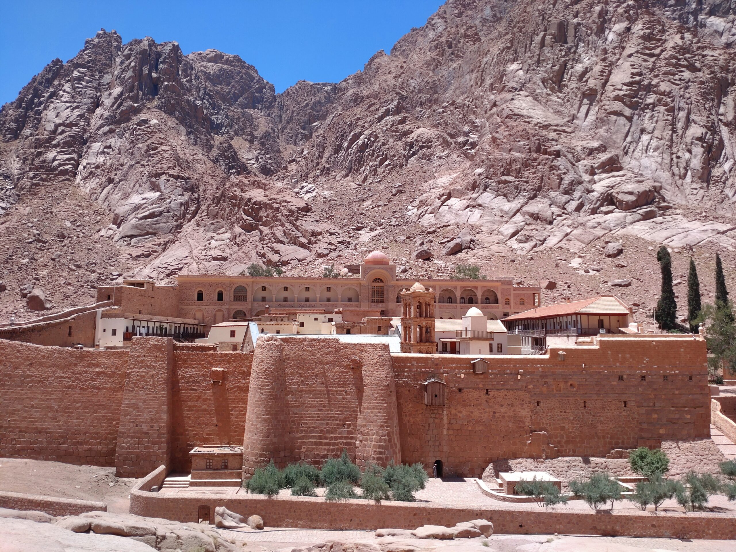 In the Sinai area I visited the mountain village St. Catherine. A small place between high mountain ranges in a quite remote area. The place is named after the St. Catherine monastery; the oldest continuous inhabited monastery in the world. This place is important in the Christian religion, as it is on the bottom of Mount Mousa (Moses in Arabic). On this mountain they say Moses received his 10 commandments. The mix of religions in St. Catherine is interesting. The monastery is nowadays still inhabited by Greek orthodox monks. The Islamic Bedouins from the village give tours in the churches and analyse the old Christian paintings for visitors. In the meantime, they go praying in the mosque in the monastery.