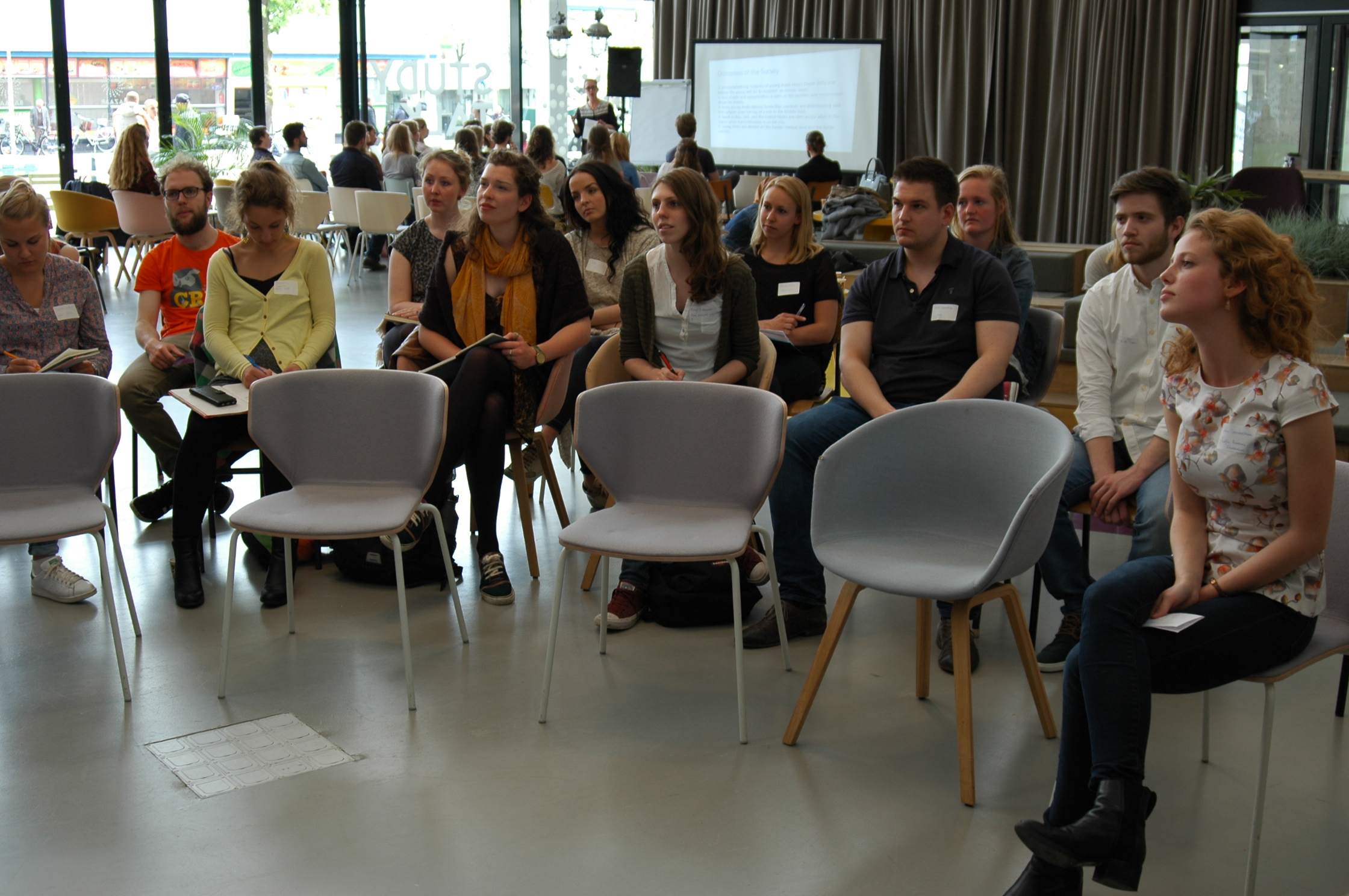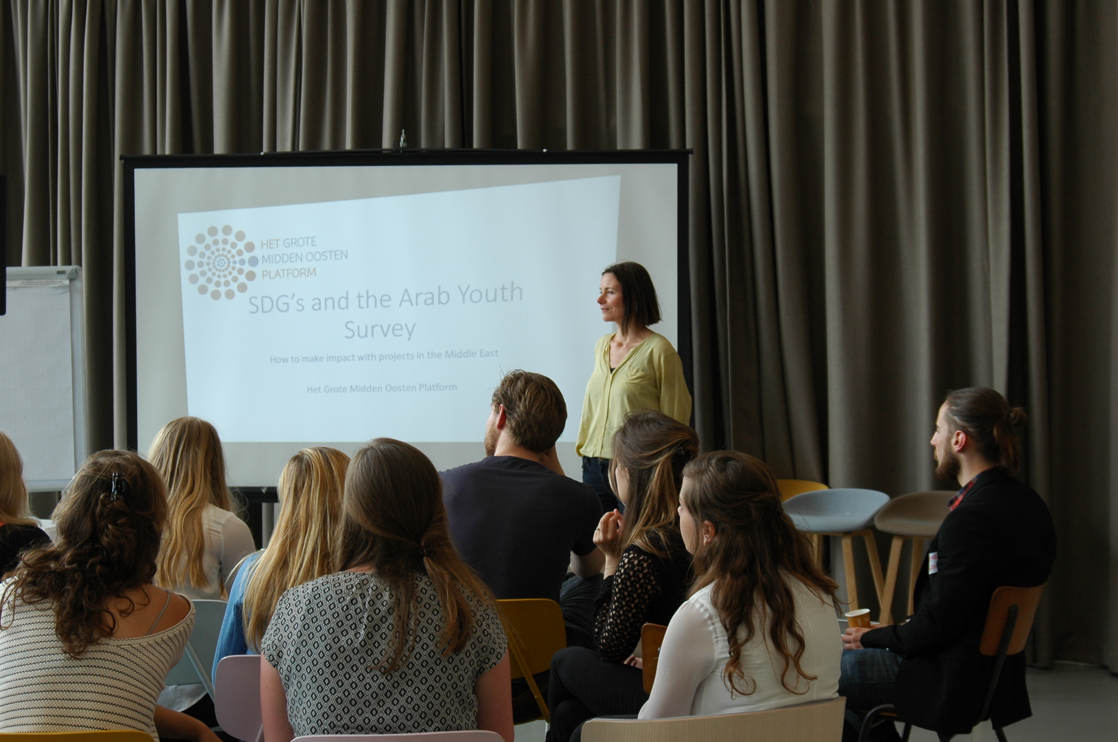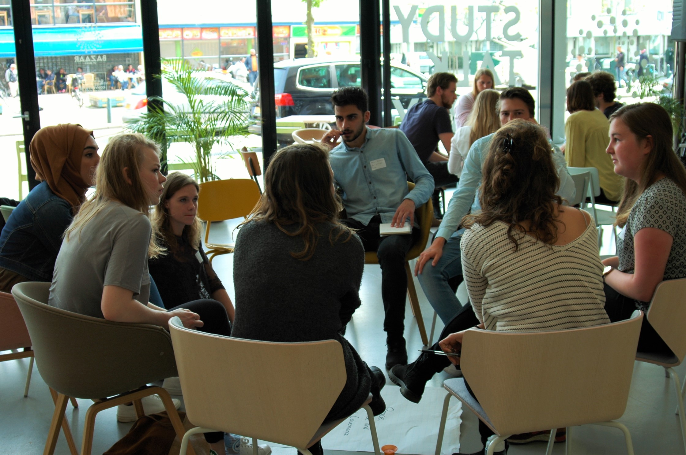 Our partner organization Nour organized an Alumni event on 21 May 2016 in celebration of their 10th anniversary. In the Bazaar of Ideas in the Hague over 50 students, alumni and other involved parties came together for an interesting and inspiring event. The Foundation was asked to facilitate one of the workshops focused on Sustainable Development Goals (SDGs) and the MENA region. The other workshop was facilitated by Het Grote Midden-Oosten Platform. The workshops were followed by a lecture by Raja Felgata, creator and editor in chief of the Colorful Top 100.